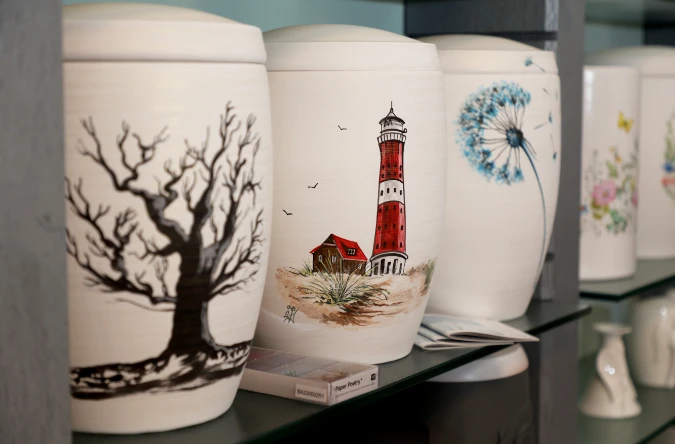 Wir arbeiten hierfür mit der Schweizer Manufaktur algordanza zusammen. In der Schweiz führen wir zudem mit unserem Partner „Oase der Ewigkeit“ Bestattungen in den Bergen durch, zum Beispiel auf einer Almwiese oder an einem Bergbach. Dort kann die Asche, anders als in Deutschland, an bestimmten Orten frei verstreut werden.