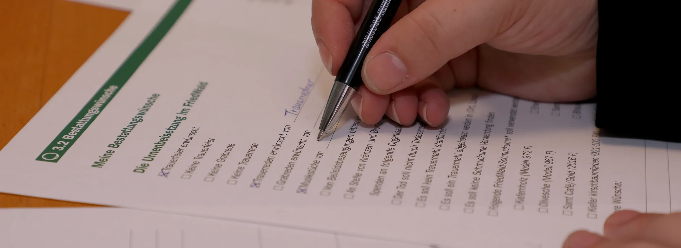 Ein Trauerfall ist für die Hinterbliebenen oft mit tiefem Schmerz, Hilflosigkeit und Sorgen verbunden – daher ist es gut und hilfreich, bereits lange im Vorfeld eine Entlastung zu schaffen, für Ihre Angehörigen und für sich selbst.