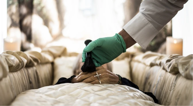 Nach Krankheit oder nach einem Unfall kann es vorkommen, dass der Körper des Verstorbenen entstellt ist. Als ausgebildeter Thanatopraktiker kann Manfred Simon nach einem speziellen Konservierungsverfahren den Körper rekonstruieren und ästhetisch wiederherstellen. Thanatopraxie ist eine Technik, die bereits in antiken Bestattungskulturen angewendet wurde, und geht weit über die eigentliche Versorgung von Verstorbenen hinaus. Sie ermöglicht einen würdevollen Abschied am offenen Sarg.